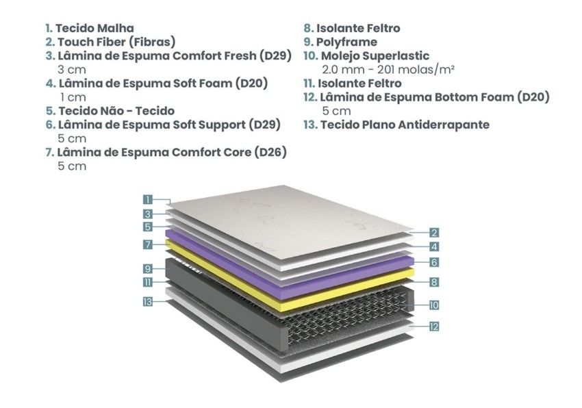 Espuma Exclusiva Ecoflex: Ecofresh, que aumenta a resistência e durabilidade, com mais frescor e conforto